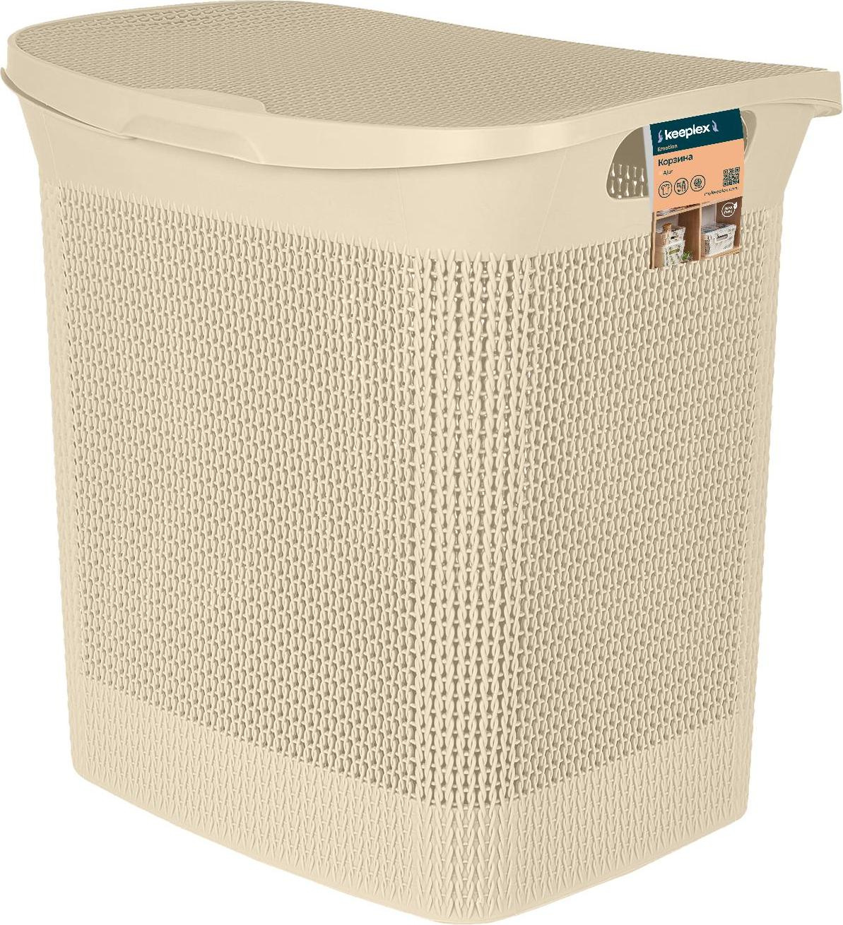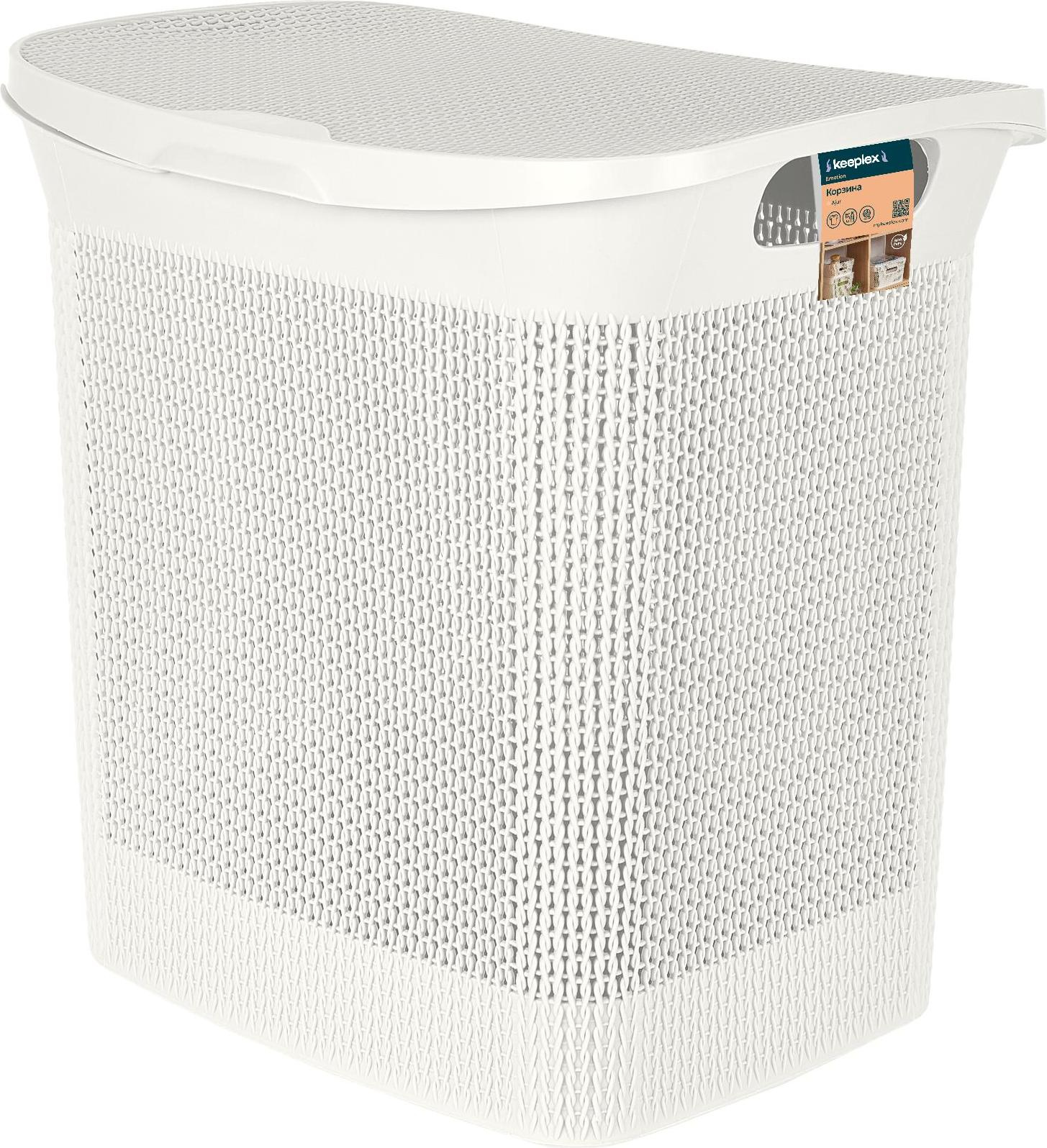 Корзина для белья Keeplex Вязь с откидной крышкой 35л 43х34х45см - красивое решение для хранения белья для стирки в ванной комнате. Ее боковые стенки имитируют тонкое вязаное плетение, создавая эффект домашнего уюта и спокойствия. Крышка держится на петлях, при желании ее легко снять. По бокам корпуса предусмотрены отверстия-ручки, которые позволяют ее легко переносить. Габариты бельевой корзины 43х34х45 см, она широкая, для большей вместимости и в высоту всего 45 см, что позволяет установить ее под раковину или использовать как дополнительную корзину для раздельного хранения белья. Входит в коллекцию бренда Keeplex "Вязь", что позволяет подобрать различные предметы для дома в едином стиле.