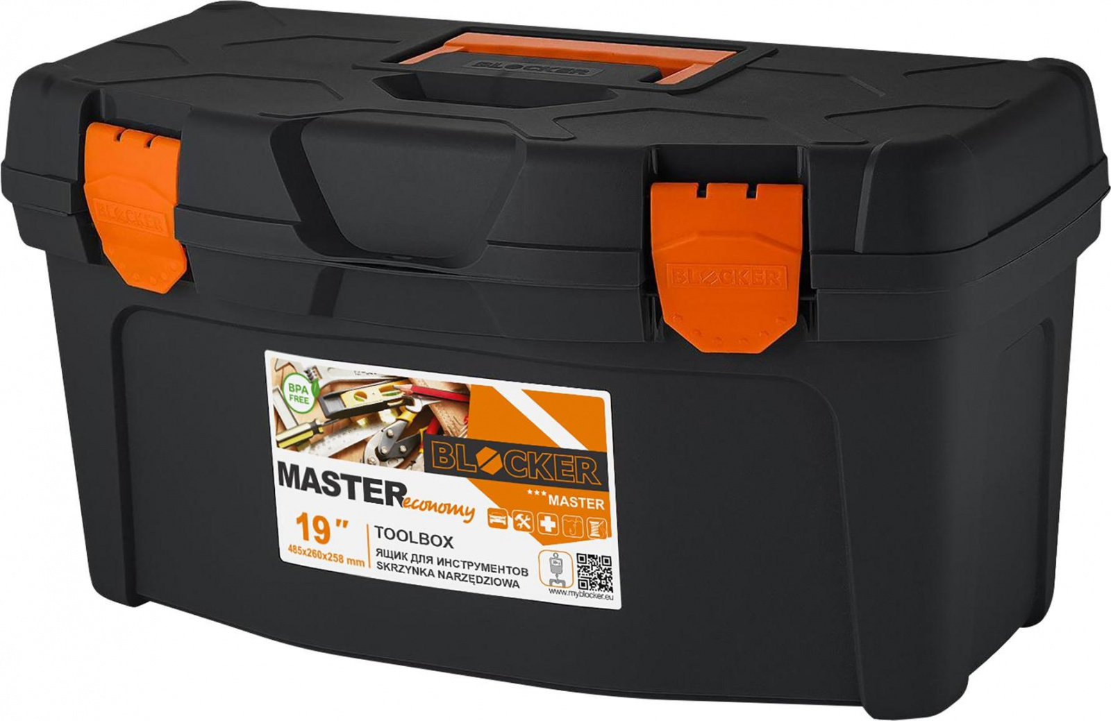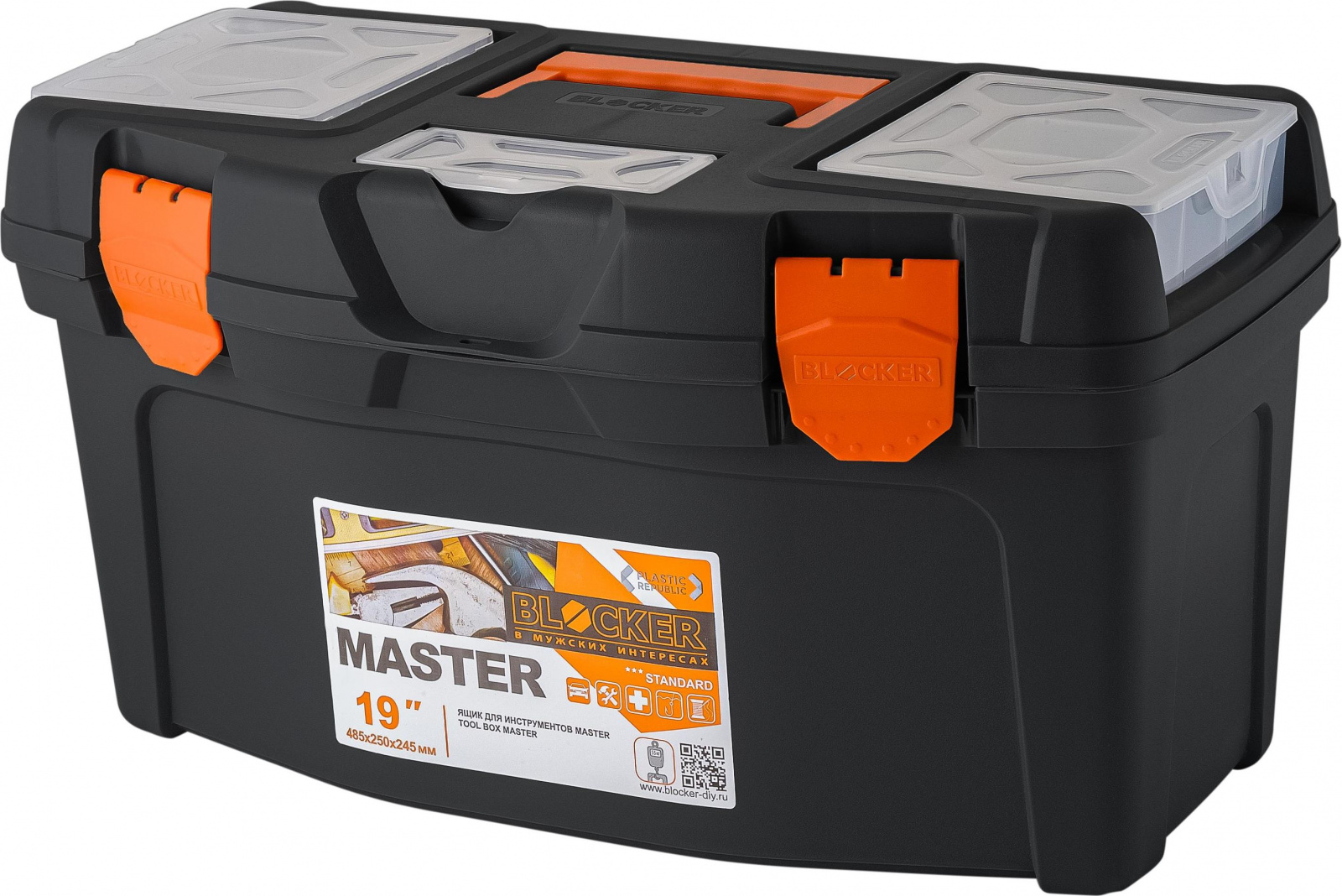 Ящик для инструментов BLOCKER серия Master, со съёмными органайзерами, 19", 485х260х258 (BR6005)