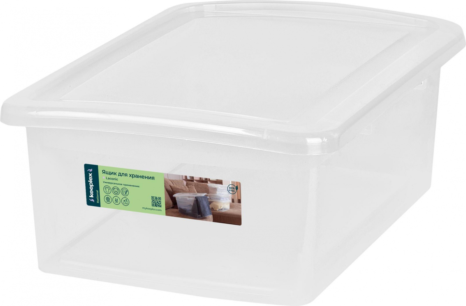 Ящик для хранения Keeplex коллекция Laconic, с крышкой, пластиковый, 5л, 370х274х95 (KL2501)