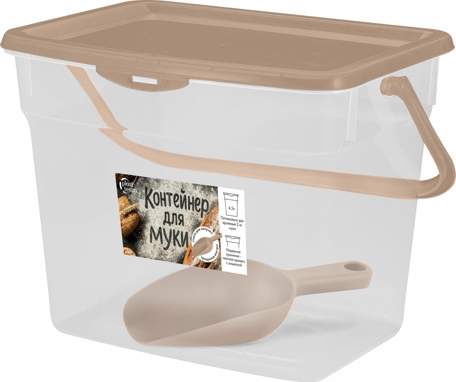 Банка для сыпучих продуктов Plast Team коллекция BERGEN, с дозаторами для разных видов продуктов, 4л, 245х105х260 (PT1023)